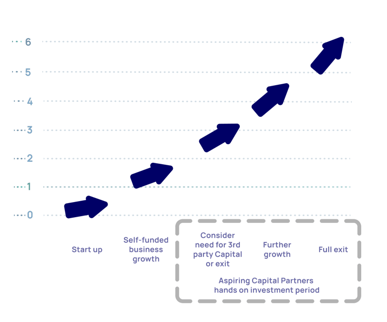As hands-on investors, we invest and partner with businesses at the point they are considering the need for third party capital or exit, working to achieve further growth before exiting.